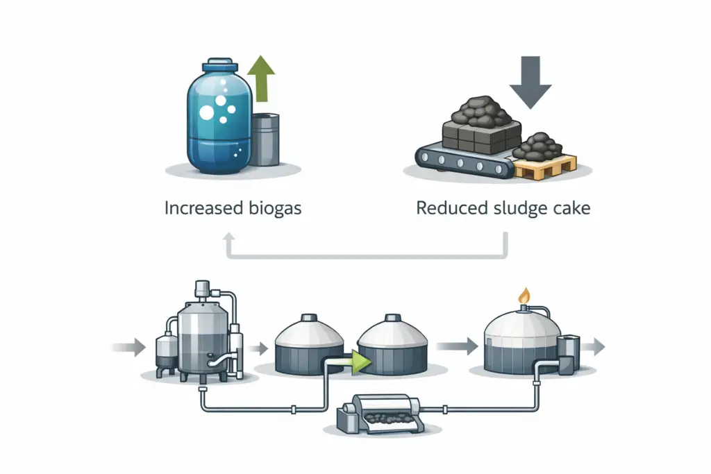 과도한 가용화는 반류수 부하 증가 등 후단 공정 리스크를 키울 수 있어, 목표는 적정 가용화 수준에서 메탄 회수 효율을 최적화하는 것입니다.